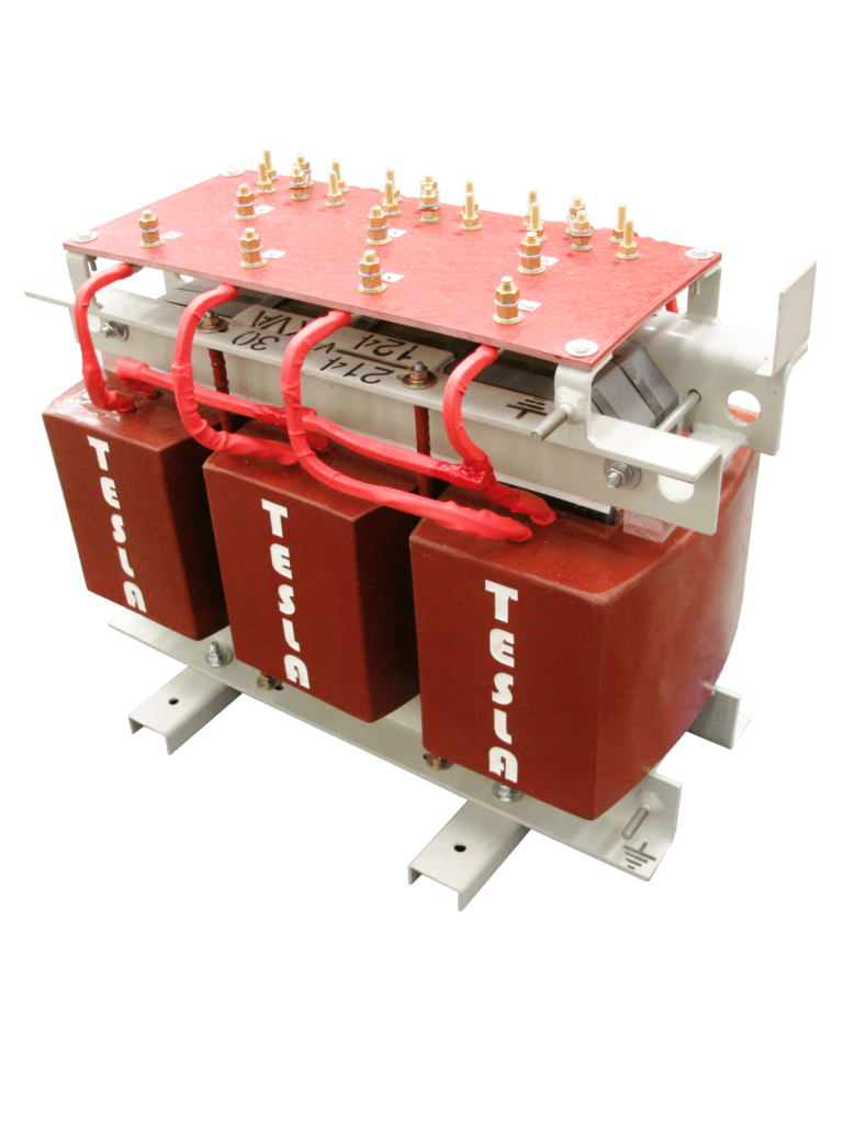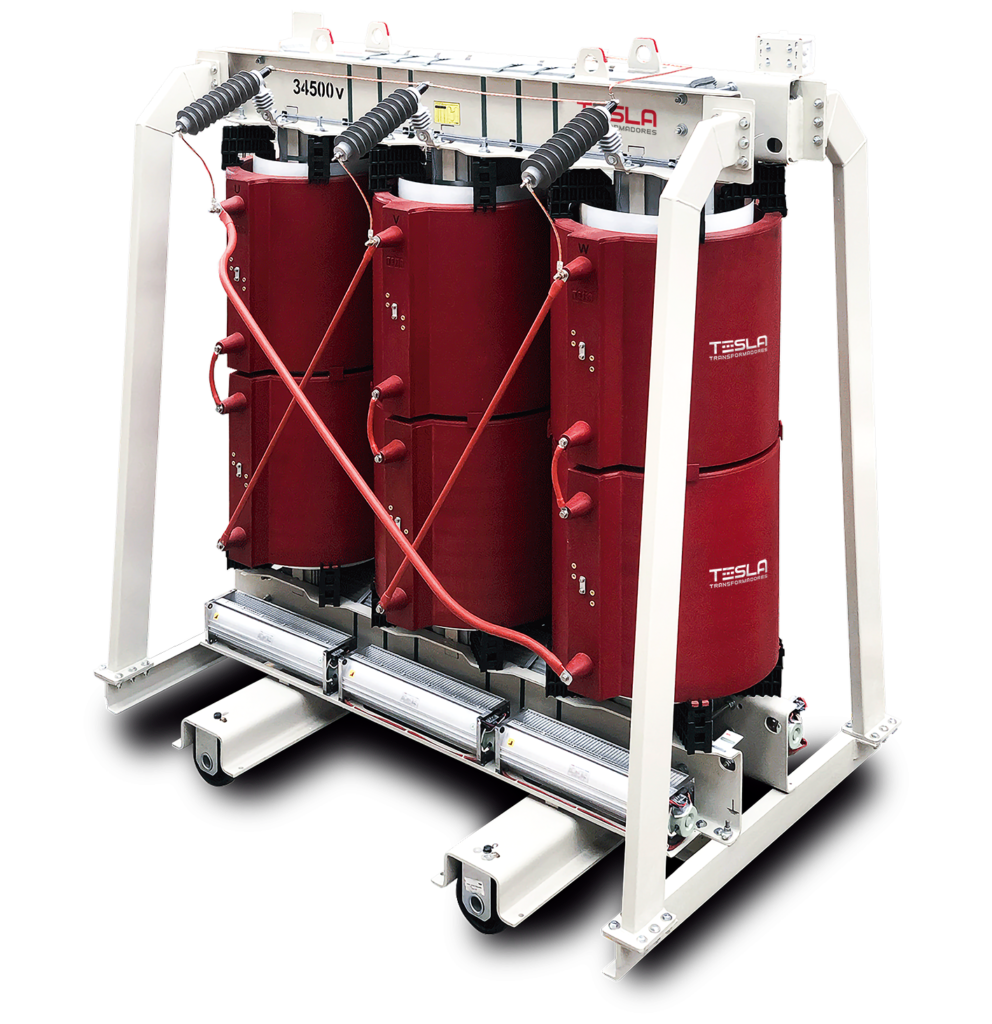 En Tesla Transformadores, fabricamos transformadores trifásicos encapsulados en resina epóxica Clase F, con potencias de hasta 5 MVA y tensiones de hasta 36 kV. Estos transformadores, diseñados bajo estándares NTC, RETIE e IEC-EN, ofrecen un alto nivel de seguridad y resistencia en ambientes exigentes. El proceso de encapsulado en autoclave y el uso de materiales Clase F garantizan un excelente aislamiento y protección contra humedad y contaminación.