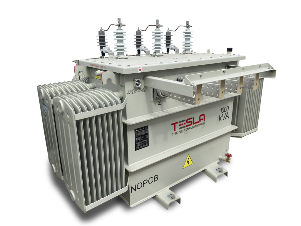 Transformador convencional sumergido en aceite con doble voltaje en baja tensión (BT) está diseñado para operar con dos niveles de voltaje seleccionables en su lado de Transformadores sumergidos en aceite, equipados con cajas de protección al frente y posterior que facilitan conexiones seguras y accesibles; su construcción robusta y el uso de aceite dieléctrico garantizan un enfriamiento eficiente y aislamiento óptimo en ambientes exigentes, son ideales para soportar condiciones extremas, como altas temperaturas, humedad y polvo, asegurando alta confiabilidad, durabilidad y protección de equipos eléctricos críticos, dotados ademas con accesorios especiales para su monitoreo y protección, como termómetros para medir la temperatura del aceite, indicadores de nivel de aceite, válvulas de alivio de presión y relés Buchholz para la detección de fallas internas. Estos dispositivos garantizan un funcionamiento seguro y eficiente, permitiendo el monitoreo continuo de las condiciones del equipo.